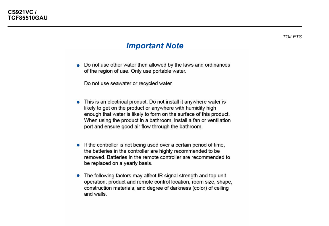 - Ewater+ (Electrolysed water with antibacterial propertes) automatically spreads out and keeps clean toilet bowl and nozzle by preventing bacteria with sanitizing effect