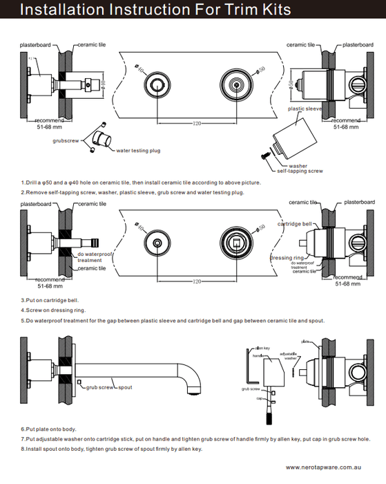 NERO MECCA WALL BASIN/BATH MIXER 160MM TRIM KITS ONLY MATTE BLACK