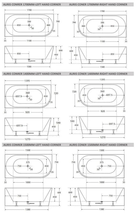 The Cassa Design Auris Corner Back to Wall Bathtub is a perfect blend of functionality and contemporary design, offering a freestanding aesthetic with a space-saving back-to-wall installation. Designed for left-hand or right-hand corner placement, this bath is available in 1400mm, 1500mm, and 1700mm sizes, with a choice of Gloss White or Matte White finishes. Featuring an integrated overflow and a matching white bath waste, this bathtub ensures a seamless, stylish, and hassle-free bathing experience.
