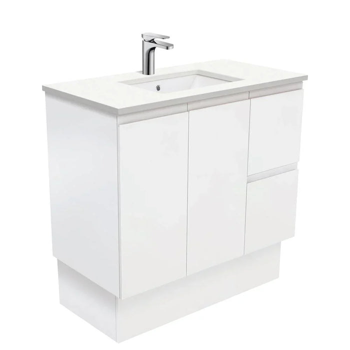 Fienza Finger Pull Matte White 900mm Vanity With Undermounted Stone Top