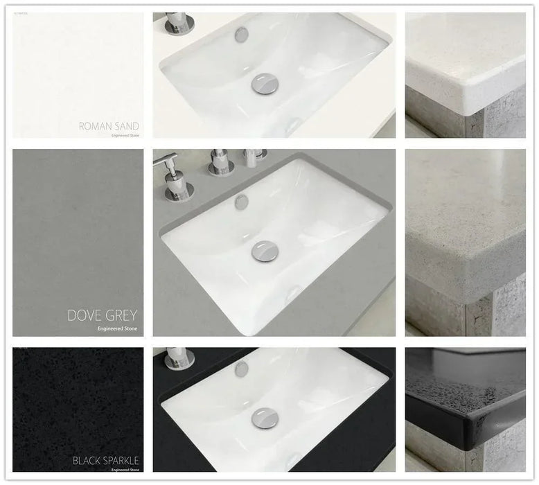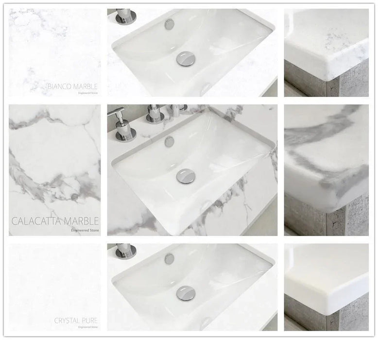 Add opulence to your bathroom with the stunning Calacatta Marble, Bianco Marble, Crystal Pure, Roman Sand, Dove Grey & Black Sparkle stone from Fienza®. The Stone tops are part of our Universal Vanities range, giving you endless combinations to choose from!