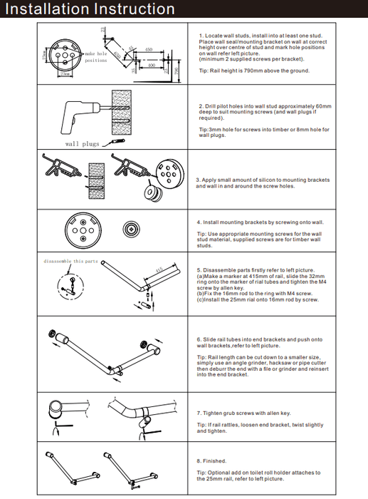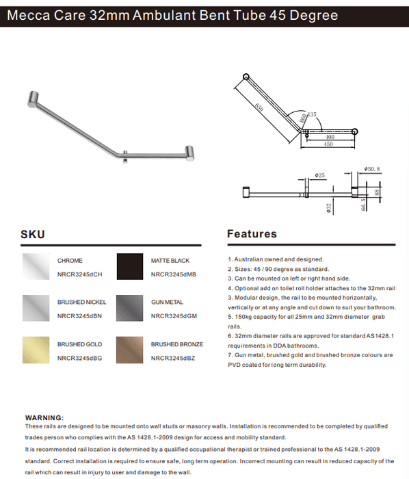 NERO MECCA CARE 32MM AMBULANT 45 DEGREE BENT TUBE GRAB RAIL 450X650MM MATTE BLACK