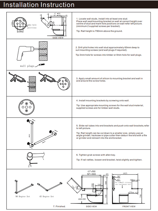 NERO MECCA CARE 32MM DDA GRAB RAIL SET 90 DEGREE 600X1000MM BRUSHED GOLD