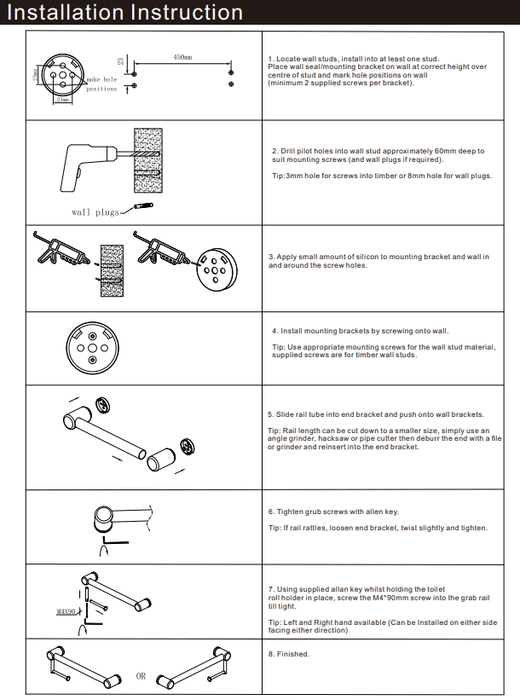 NERO MECCA CARE 32MM GRAB RAIL WITH TOILET ROLL HOLDER 450MM BRUSHED GOLD