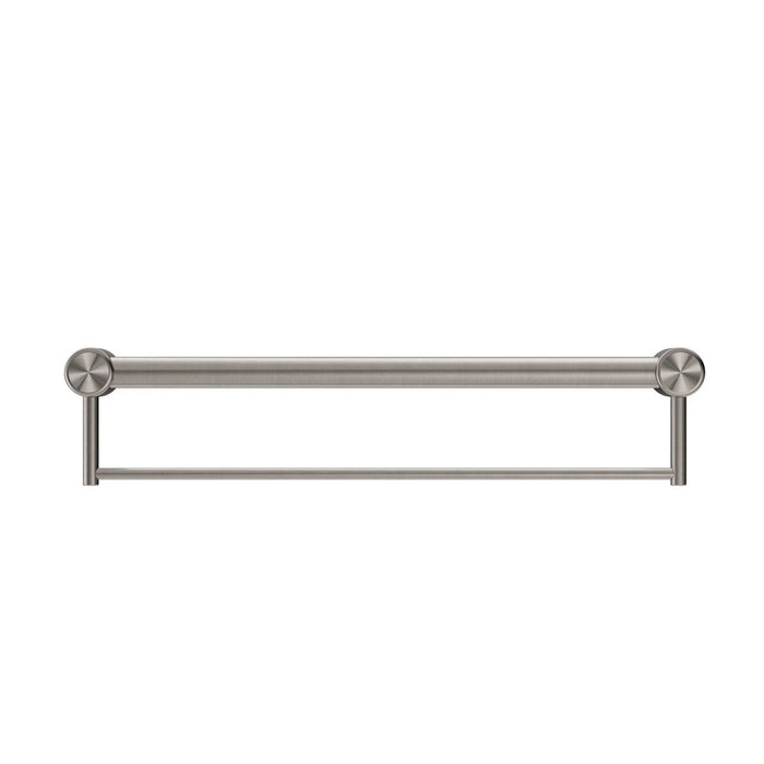 NERO MECCA CARE 32MM GRAB RAIL WITH TOWEL HOLDER 600MM BRUSHED NICKEL