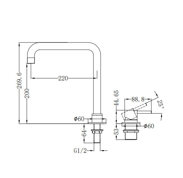 NERO MECCA HOB BASIN MIXER SQUARE SWIVEL SPOUT GUN METAL