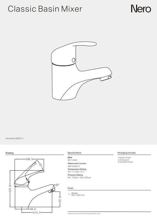 NERO CLASSIC BASIN MIXER CHROME