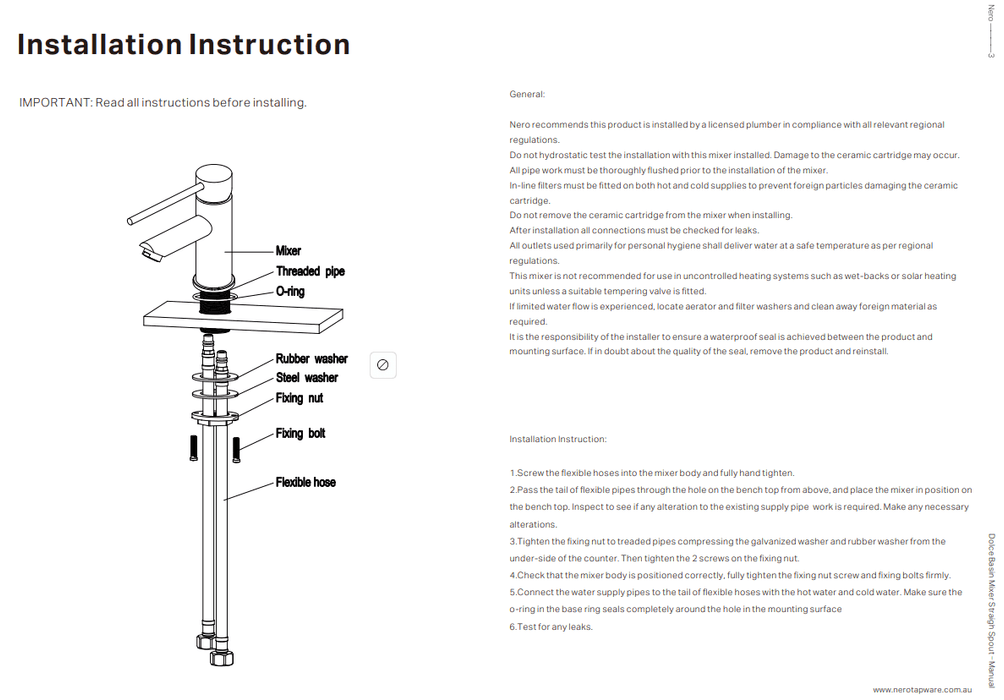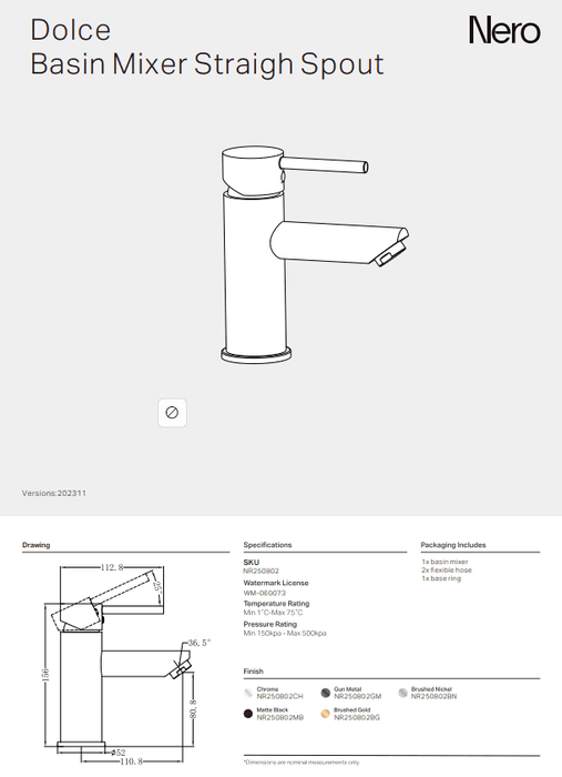 NERO DOLCE BASIN MIXER STRAIGH SPOUT BRUSHED NICKEL