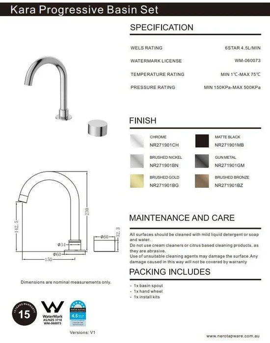 NERO KARA PROGRESSIVE BASIN SET GUN METAL