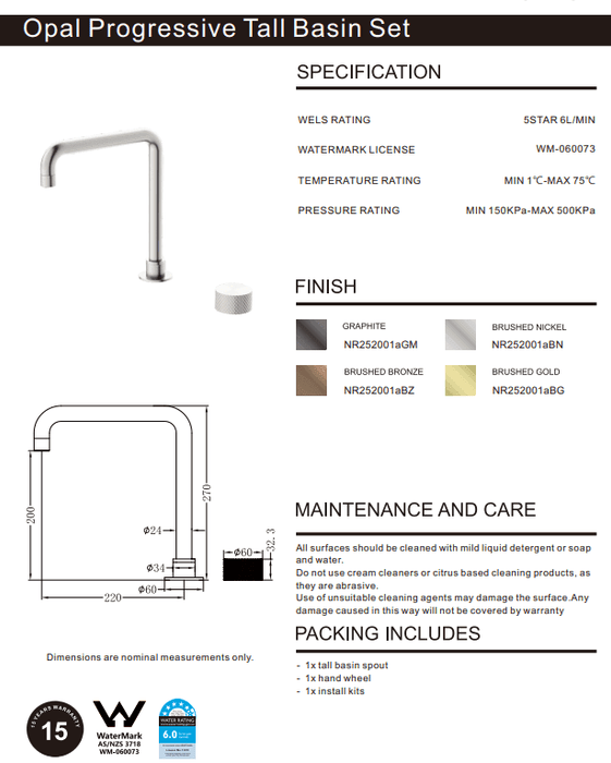 NERO OPAL PROGRESSIVE TALL BASIN SET BRUSHED NICKEL