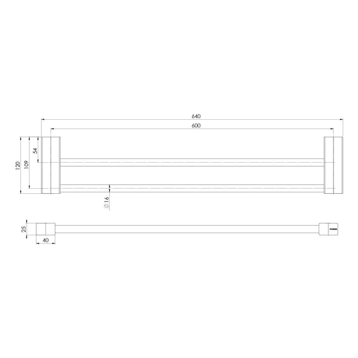 Phoenix Lexi MKII Double Towel Rail 600mm