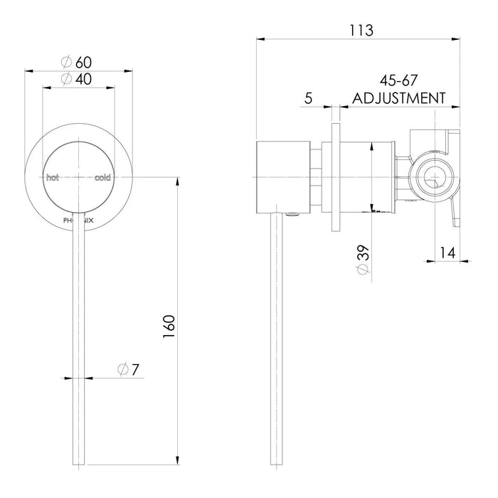 Phoenix Vivid Slimline SwitchMix Shower /Wall Mixer 60mm Backplate & Extended Lever
